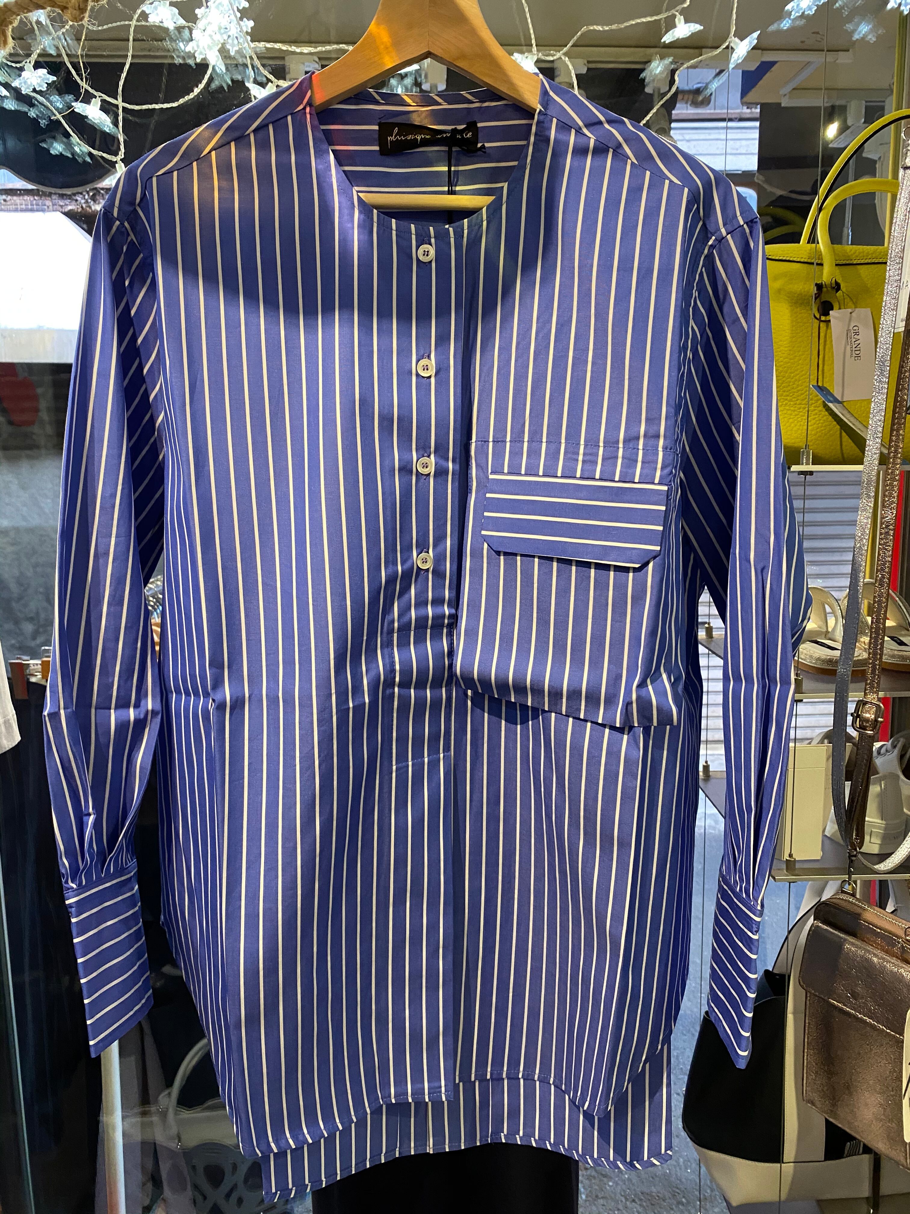 ブルーにはっきりとした白のストライプが少しメンズライク。