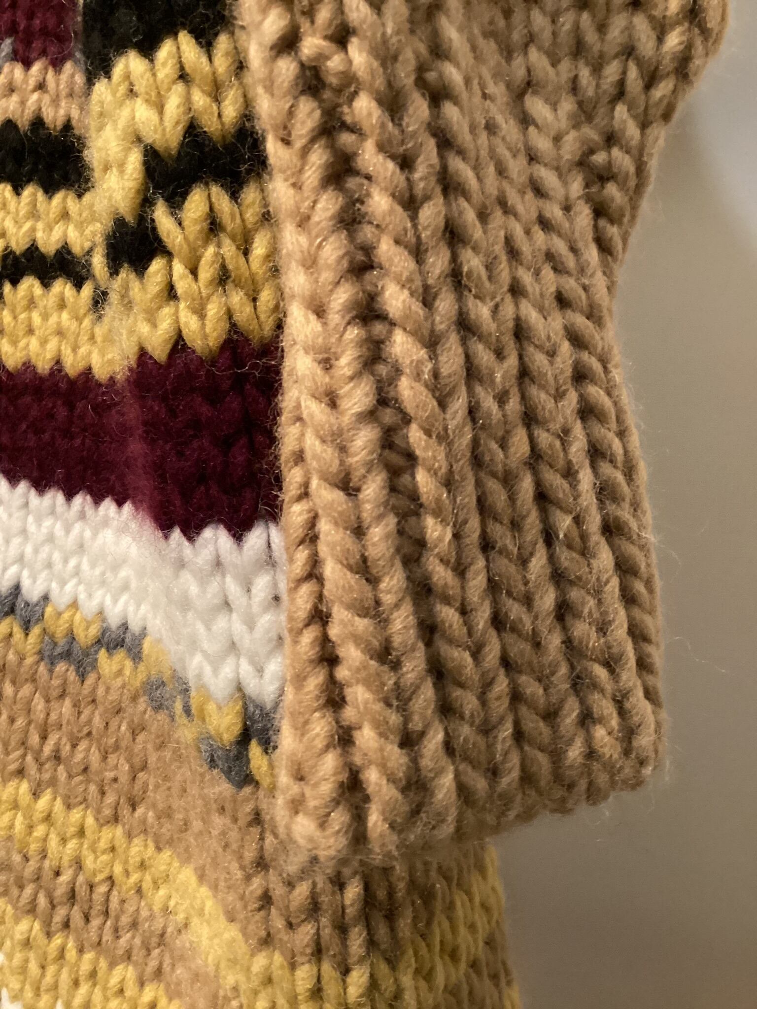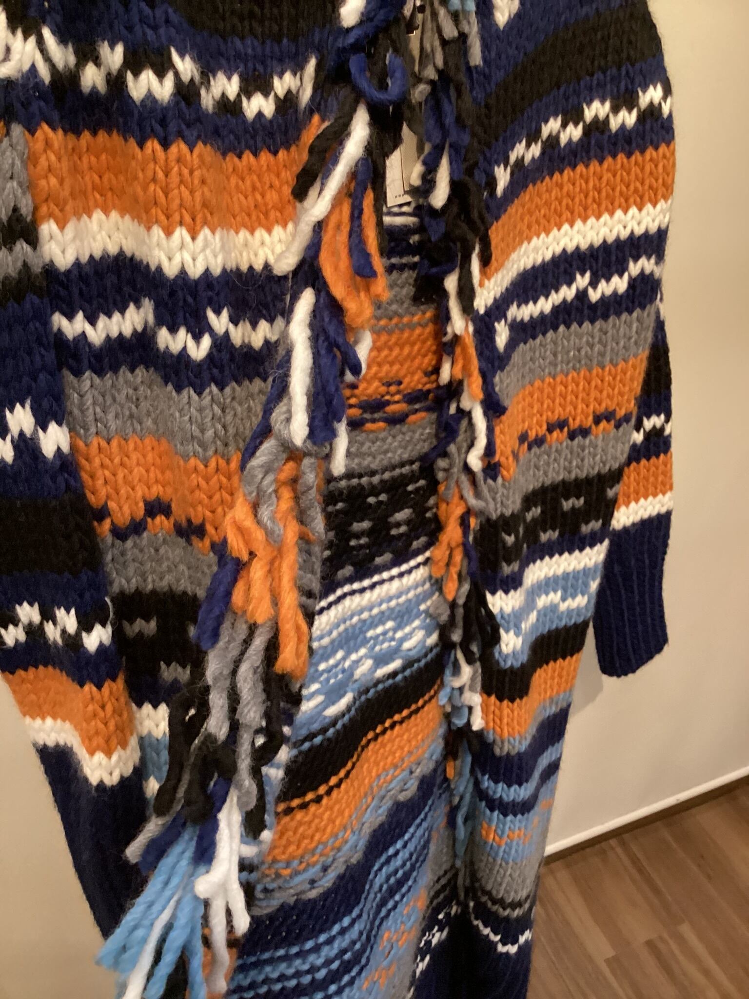ネイビー、ベージュとも可愛い配色のローゲージカーディガン