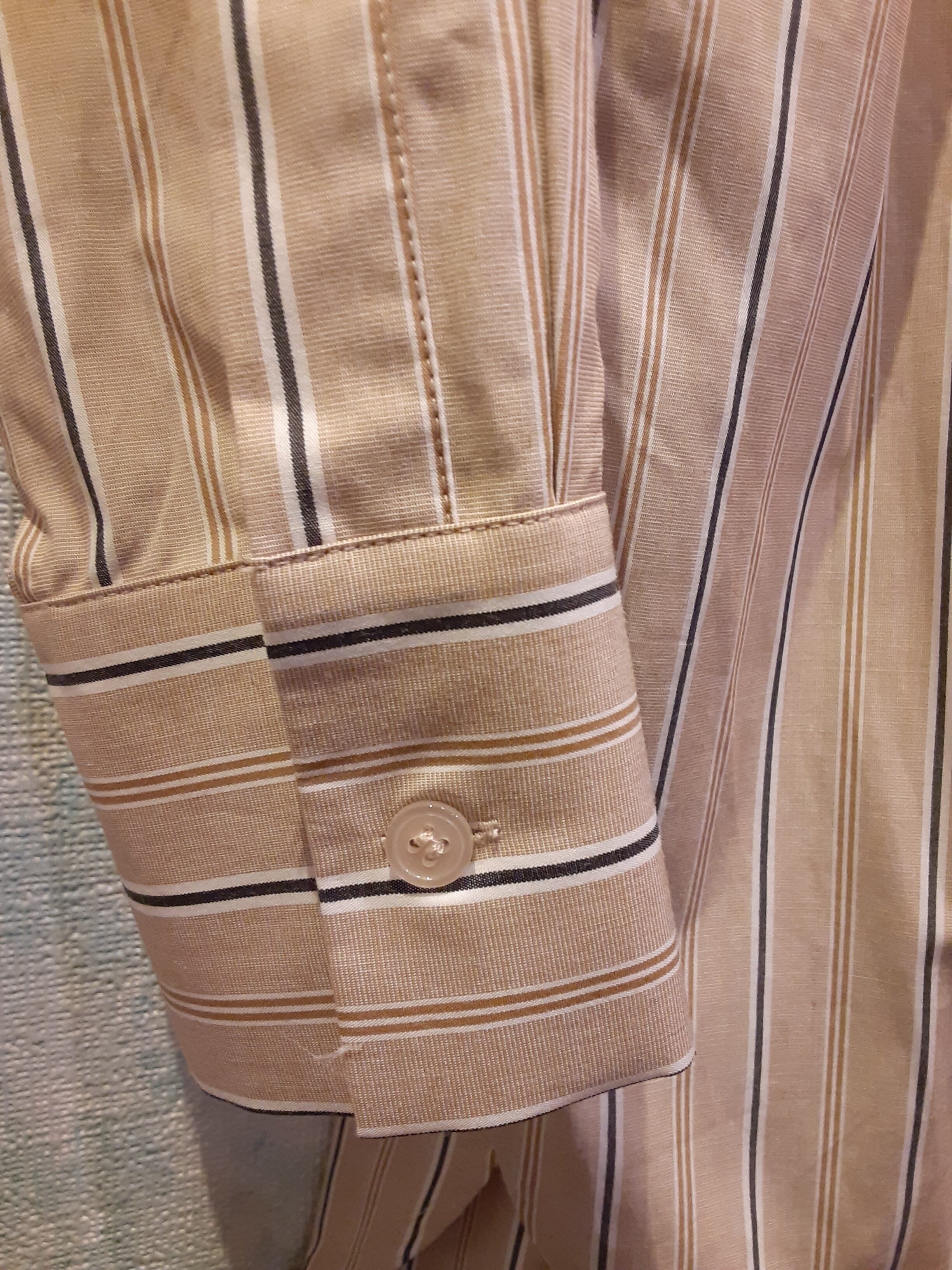 ベージュ、ネイビー、ホワイトのやさしいストライプ