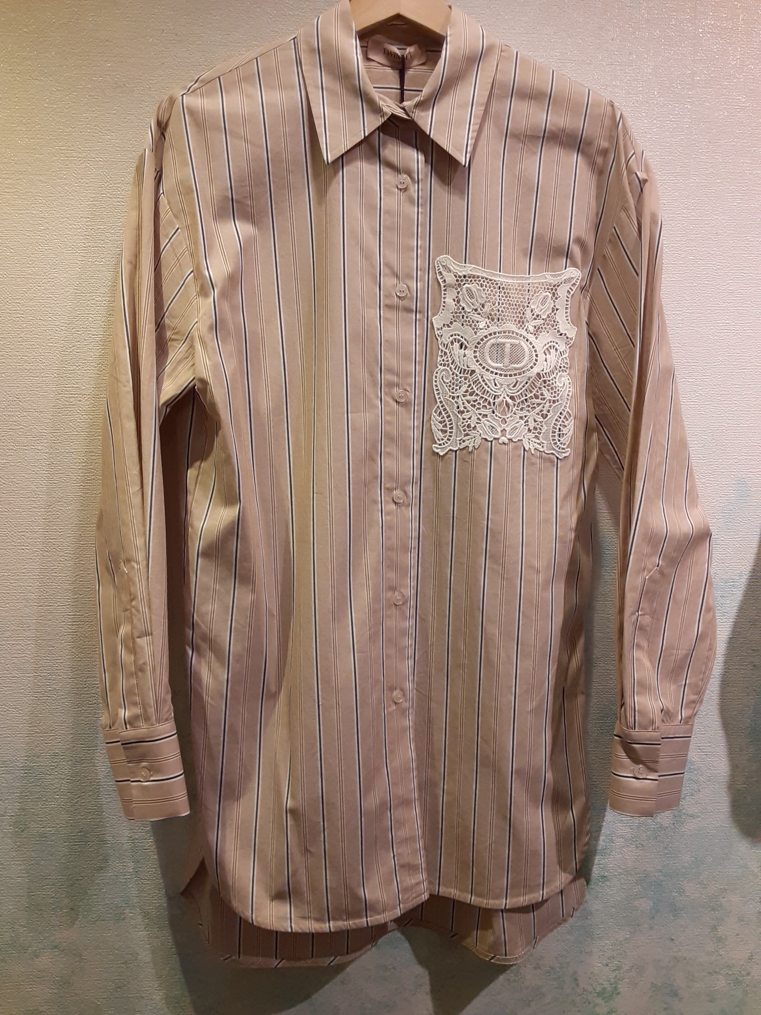ロングブラウスで 胸ポケットは 上質な刺繍が 縫い付けられています。