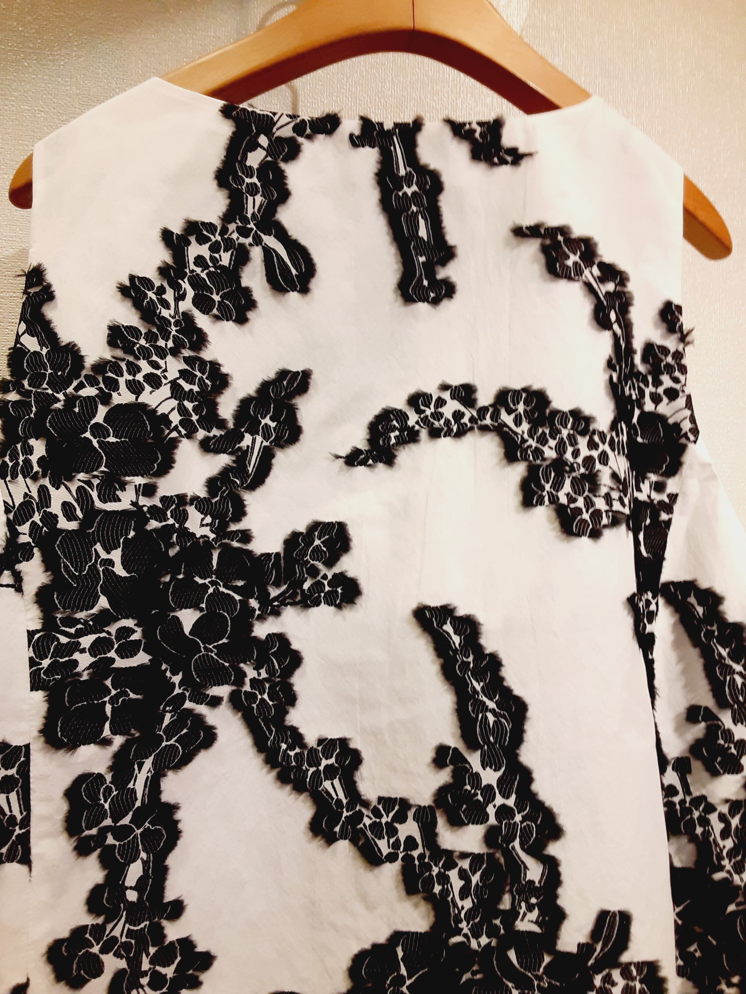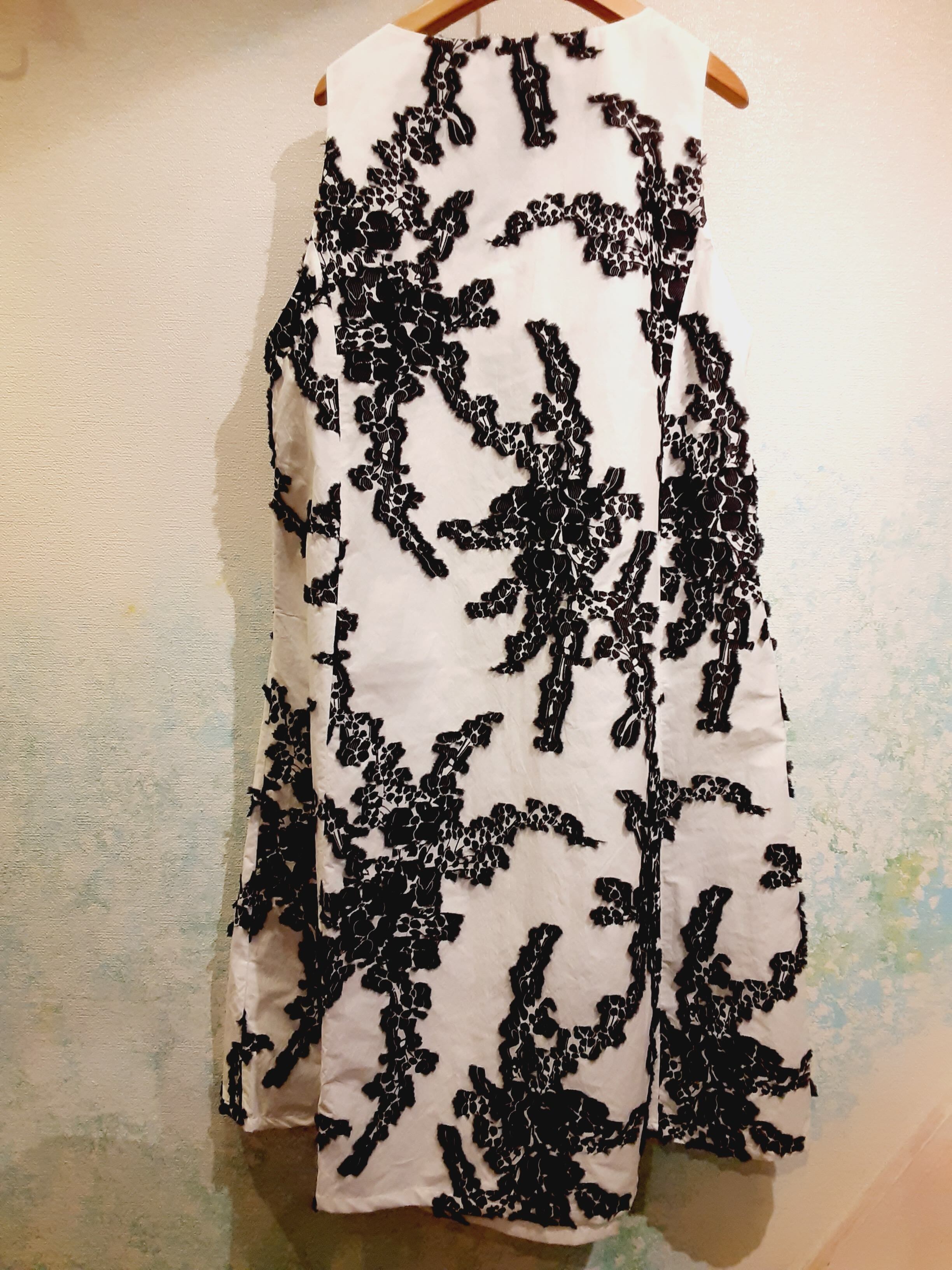 立体感を持たせた 美しい生地柄が印象的なドレス ボディーラインを拾わない Aラインのシルエットで 普段使いにもドレッシーなスタイルにも オススメです。