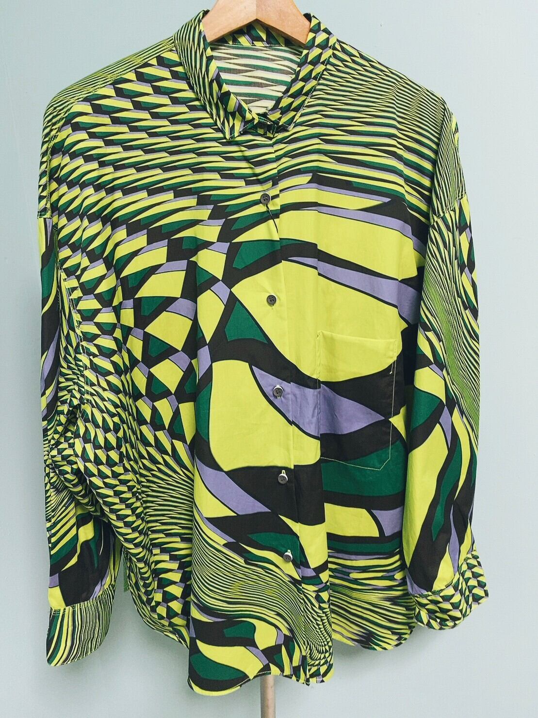 鮮やかな色合いと幾何学模様が個性的なブラウスです✨