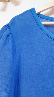 独特なカットの切り替えが 個性適な 麻のワンピース。