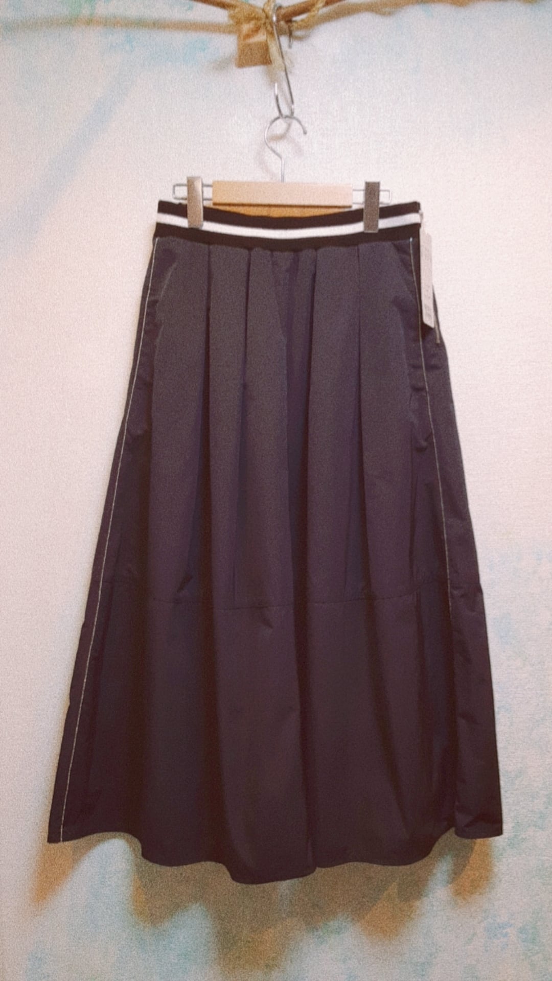 シルバービーズがアクセントのスカートです。ポリエステル素材で、風合いがありながらもシワになりにくく、お手入れも簡単です。ウエスト部分にはゴムが入っているので、快適な着心地を実現しています。
