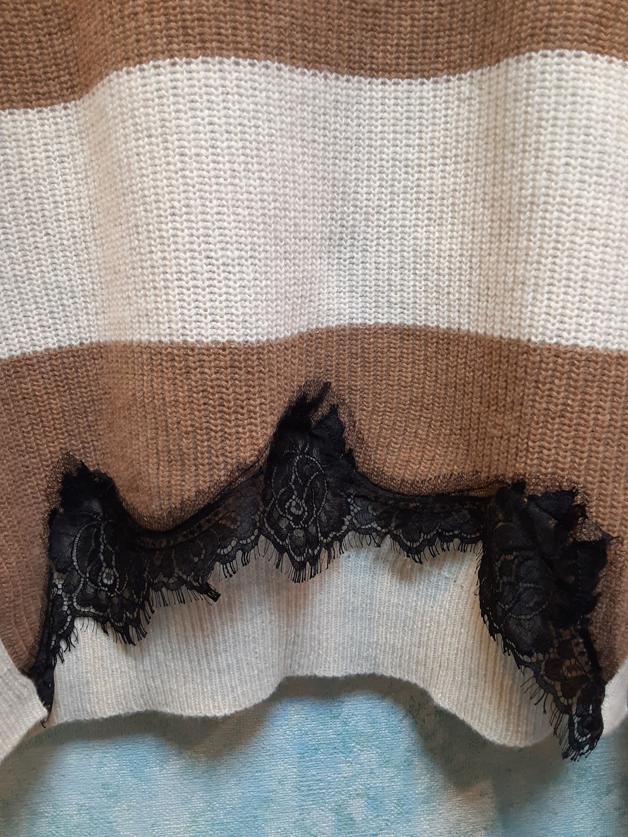 ベージュ×オフホワイト×黒レース